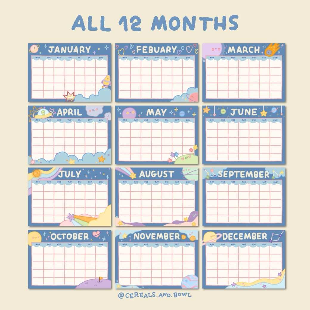 Calendar ตีมอวกาศสุดฮิต แบบไม่ลงวันที่ สามารถใช้จดได้ยาวๆ ปีต่อปีเลย