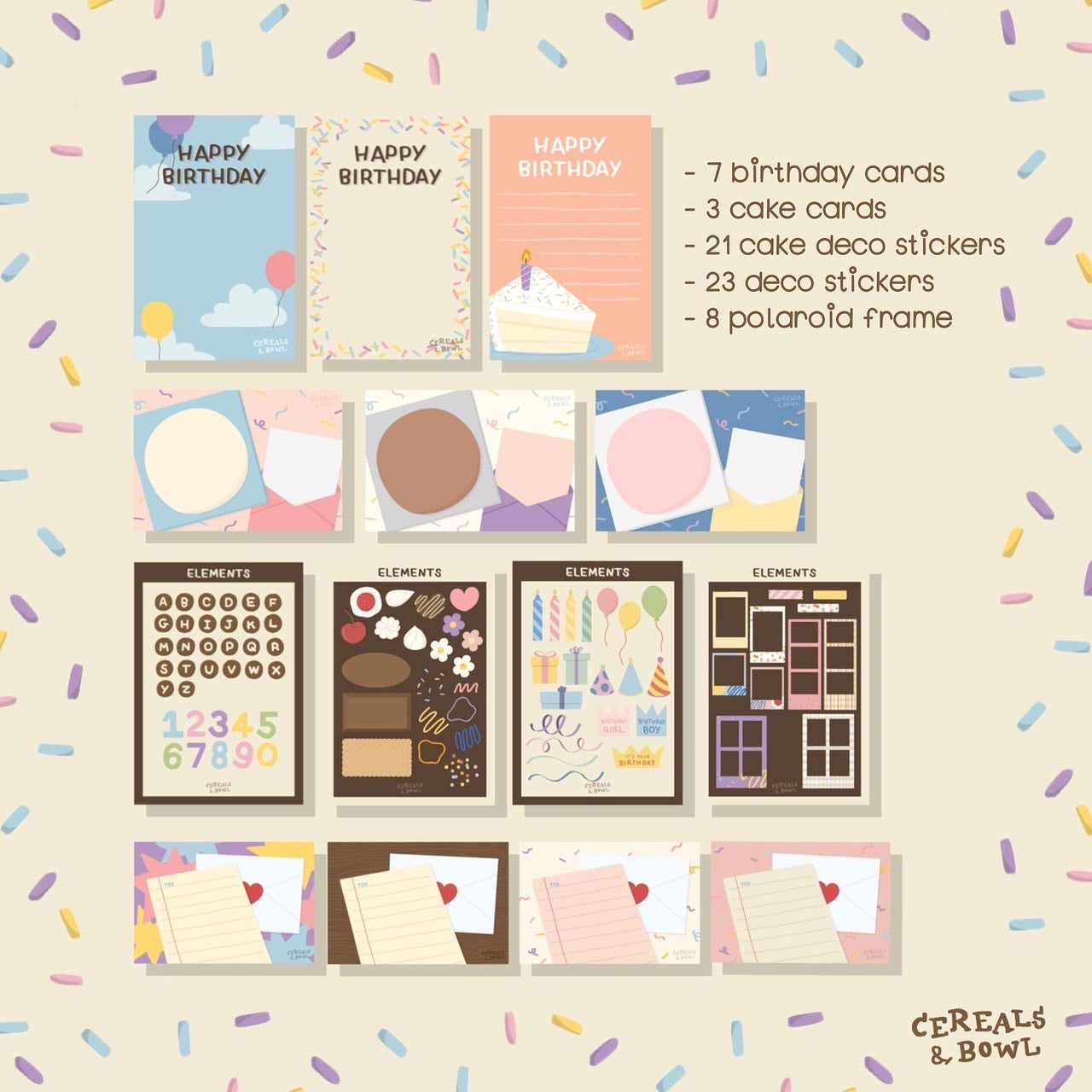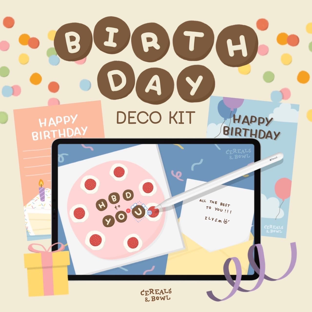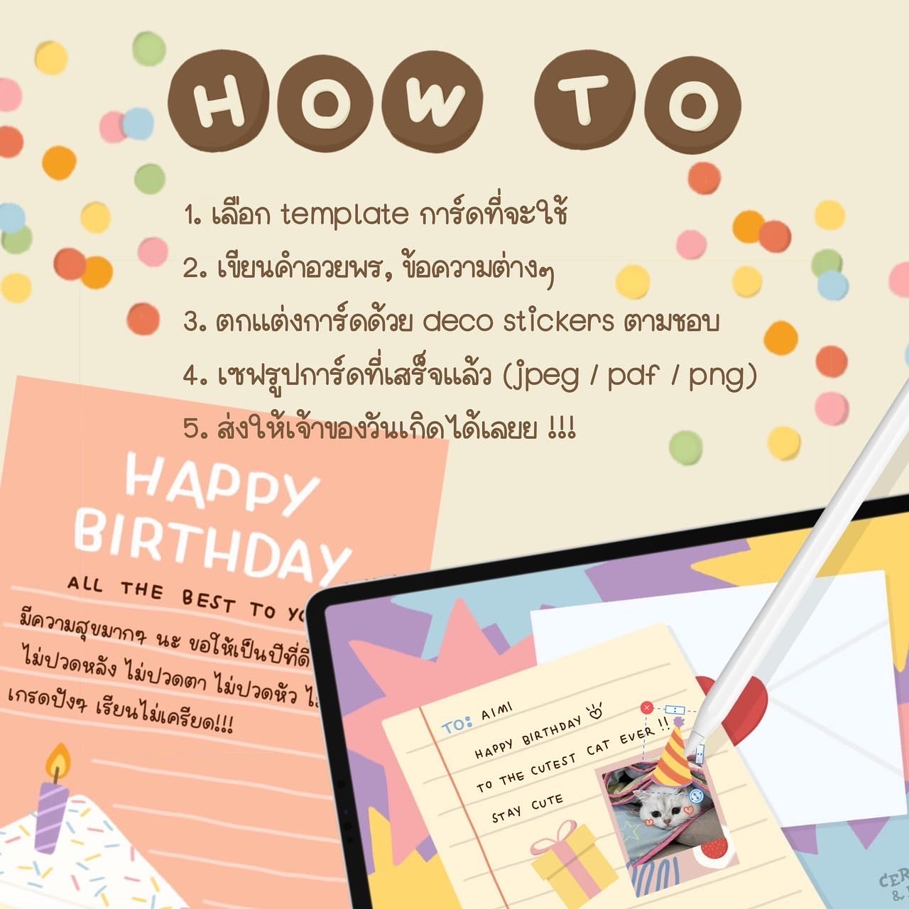 เซ็ทตกแต่งการ์ดวันเกิดดิจิตอลนั้นไม่ได้เจอหน้ากัน แต่ส่งการ์ดให้แทนได้💌🤲🏻 สำหรับใครที่กำลังหาการ์ดน่ารักแบบไม่ซ้ำใครเป็นพิเศษให้เพื่อนก็สามารถเอาเซ็ตนี้ไปตกแต่งด้วยตัวเองในแอพ goodnotes ได้เลย (หรือว่าใครทำอะไรในแอพอื่นก็ได้เพราะเรามีไฟล์ .png อาจจะด้วย) ทำให้ใส่รูปอื่นๆ เพิ่มเติมได้เพิ่มเติมแล้วส่งให้เพื่อนเป็นรูปภาพหรือ .pdf ทาง Line หรือโซเชียลมีเดียได้เลย 🍒